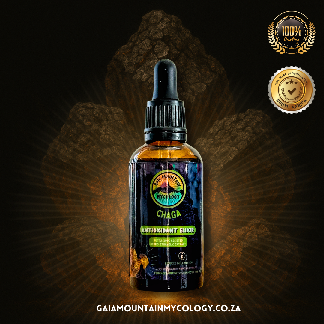 Our Chaga Dual Extract is made only from the fruiting body of the mushroom (never fillers or grain) using a modern ultrasonic dual extraction process. That means you get the full spectrum of goodness: antioxidants, immune-boosting beta-glucans, and anti-inflammatory compounds delivered in every drop.